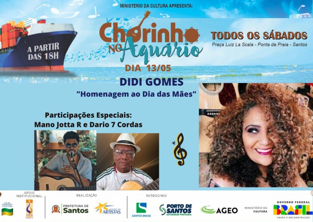 Celebrar o Dia das Mães com muita música e emoção no Chorinho no Aquário. Dessa maneira, a cantora Didi Gomes está preparando um show especial em homenagem às mães e ao grupo Chorões Santistas, fundado por seu pai, Airton do violão.