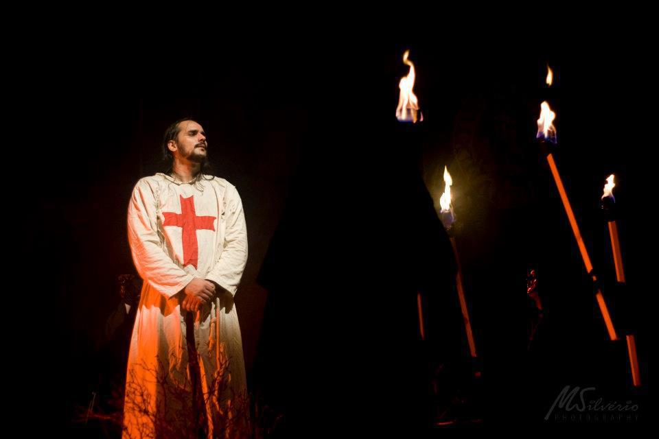 O ator John Vaz, que também assina a direção da encenação, vive o cavaleiro Templário Jacques De Molay, último Grão Mestre da misteriosa Ordem. O espetáculo, que faz uma viagem ao tempo medieval, revela as respostas para questões como quem foram os Templários e o motivo pelo qual foram exterminados. A montagem da peça tem a participação da plateia. Dez espectadores voluntários participarão atuando como inquisidores e templários.