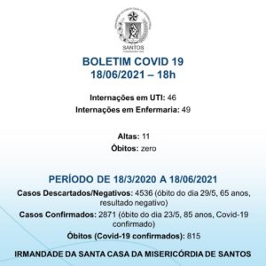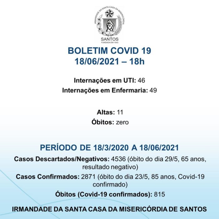 No meio de tantas mortes, com o Brasil beirando as 500 mil pela Covid, uma boa notícia foi divulgada pelo tradicional boletim informativo da Santa Casa de Santos, principal hospital da Baixada Santista e litoral paulista.
