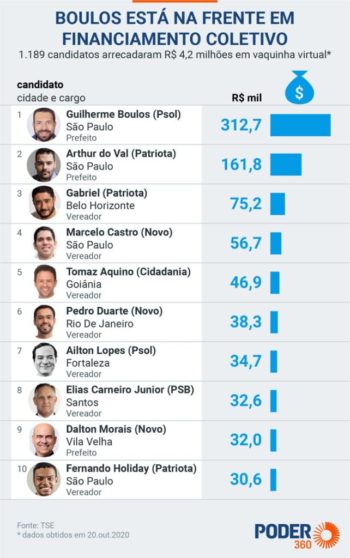 E o único da lista que é candidato em uma cidade não capital, tendo arrecadado