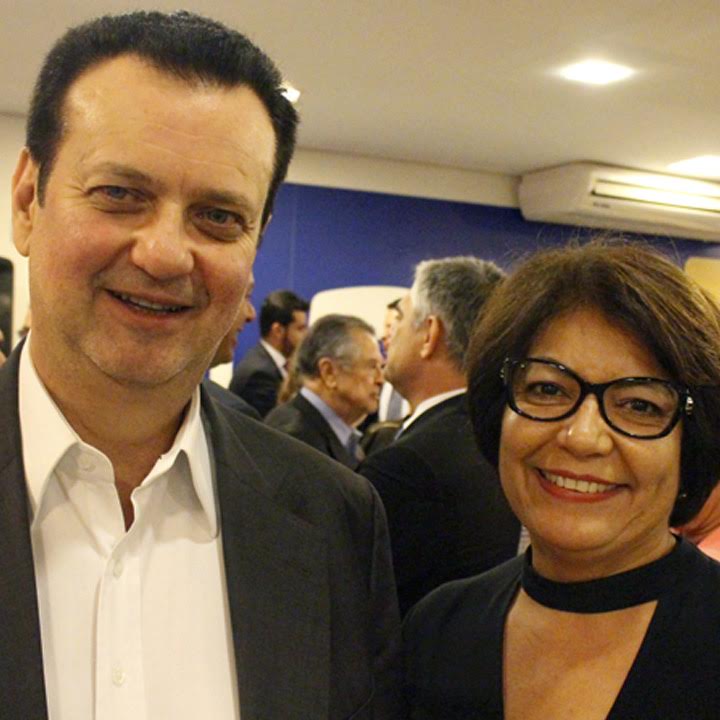 Presidente licenciado do PSD, Gilberto Kassab, e a presidente municipal do partido, Roseli Veiga. Foto: Divulgação
