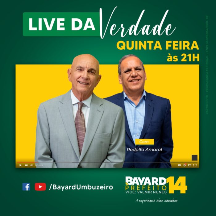 O candidato do PTB, Bayard Umbuzeiro, e o jornalista Rodolfo Amaral participam logo mais de uma live onde prometem trazer à tona várias informações de interesse público à sociedade santista.