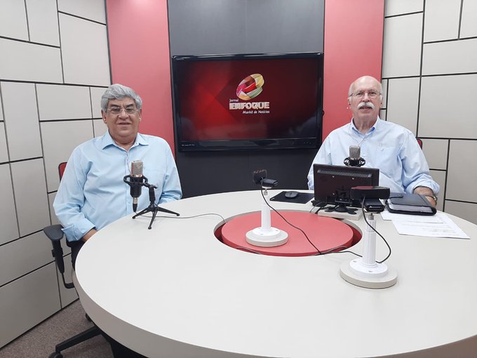 O vereador e vice-provedor Cacá Teixeira participou do programa, apresentado pelo jornalista Francisco La Scala (à dir).