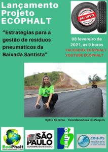 Na segunda (8), a Ecophalt fará o lançamento oficial do projeto Ecophalt: Estratégias para a gestão de resíduos pneumáticos da Baixada Santista.