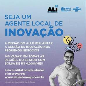 O Projeto ALI é resultado de um convênio entre Sebrae-SP com o Conselho Nacional de Desenvolvimento Científico e Tecnológico (CNPq), e tem como objetivo revolucionar o pequeno negócio por meio da inovação.