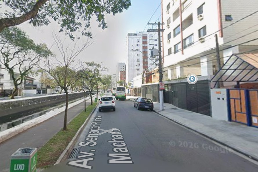 Dessa forma, a proposta prevê o alargamento da Avenida Conselheiro Nébias dividida em 3 etapas. A primeira entre as ruas Bittencourt e Avenida São Francisco. Foto: Google/Divulgação