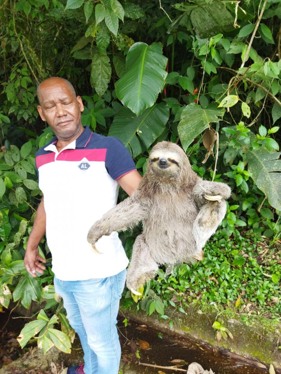 Edmilson diz não ter sentido medo ao resgatar o animal, fadado a ser atropelado na estrada. “Sei como pegá-lo porque fiz muito isso no Orquidário”, afirmou. A ideia de ambos era levar o bicho-preguiça para a subprefeitura e acionar a Guarda Municipal. “Mas aí, ele começou a esticar o braço em direção à mata, onde há várias embaúbas, e resolvemos colocá-la em uma dessa árvores”, prosseguiu o funcionário, que atua como assessor técnico na Subprefeitura da Área Continental.