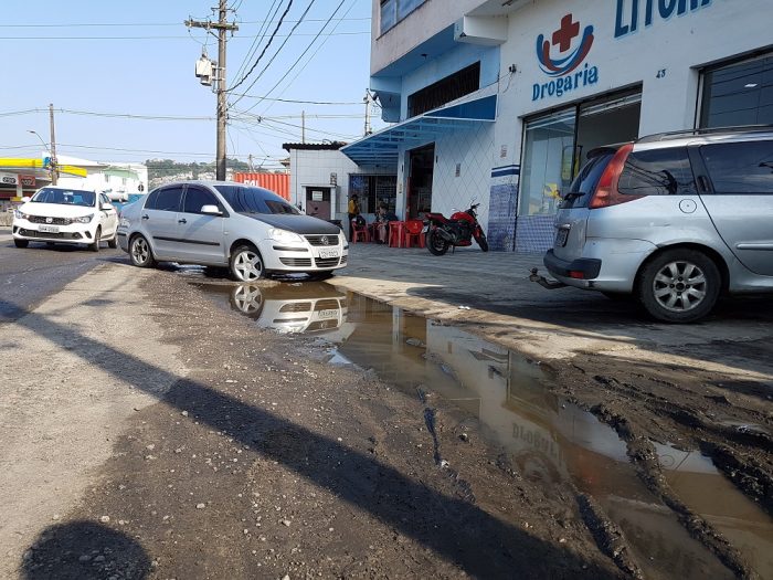Monteiro também reclamou de água parada que fica na entrada do comércio.
