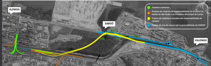 O projeto prevê uma segunda ligação rodoviária entre a Via Anchieta e a Avenida Augusto Barata, além de um conjunto de vias em área portuária para acesso aos diversos terminais da região da Alemoa e do Saboó.