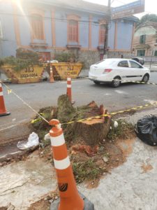 A reportagem esteve na rua e presenciou o momento em que diversas árvores foram derrubadas.