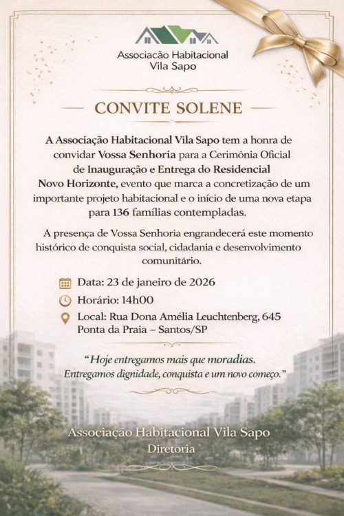 “O projeto inicia-se no governo Dilma, na modalidade Minha Casa Minha Vida – Entidades. O projeto inicia-se com a comunidade da Vila Sapo, uma área ocupada na Ponta da Praia, a partir da Associação Habitacional Vila Sapo e que constrói o empreendimento. São 136 famílias contempladas em um prédio de 12 andares, muito bem localizado”, enfatiza.
