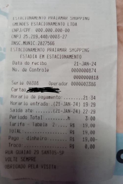 Por 3 horas, o valor cobrado é R$ 19,00.