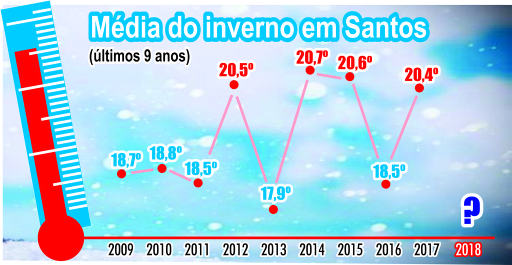 Nesta quinta-feira (21), começou o inverno. Diferente do ano passado, cuja temperatura média foi de 20,4ºC, o frio em Santos e região neste ano tende a ser mais intenso, semelhante ao registrado em 2013, quando foram registradas as temperaturas mais baixas dos últimos anos.