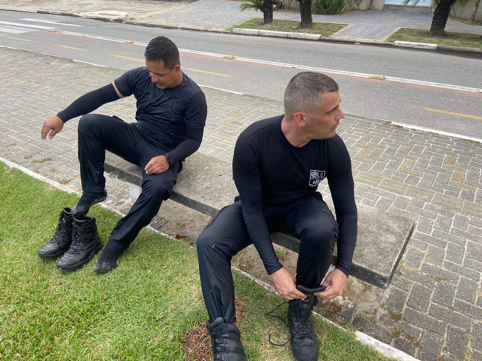 Guardas Municipais Eliandro e Bianchi, durante patrulhamento de moto pela avenida, avistaram o momento em que o jovem se debatia na água e correram para ajudar