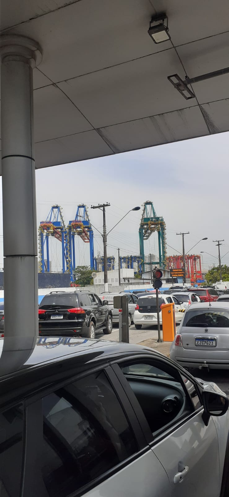 Motoristas enfrentam trânsito lento na travessia de balsas Santos-Guarujá