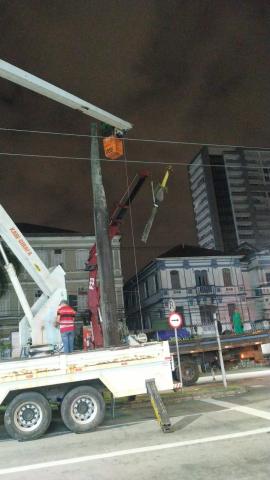 Operação noturna remove palmeira em risco na Avenida Ana Costa