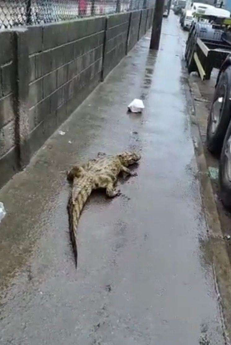 Jacaré é flagrado andando ao redor de terminal portuário em Santos