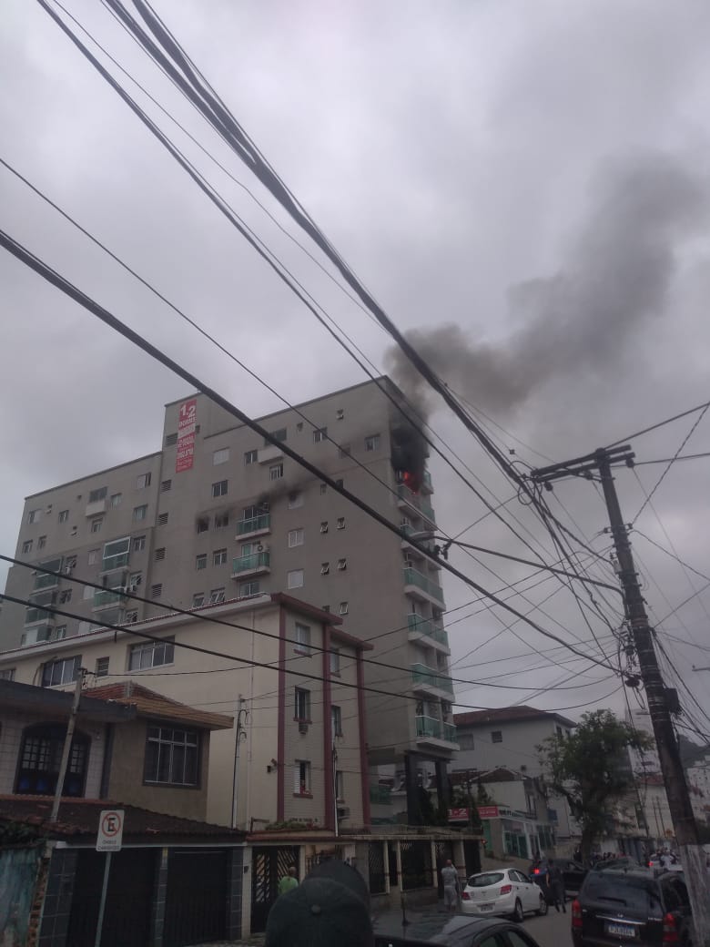 Incêndio atinge prédio na Rua Carlos Gomes, em Santos