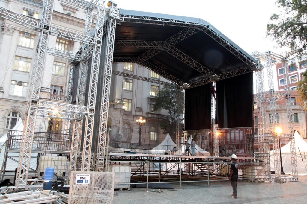 O palco principal tem 12 metros de comprimento por 10 de largura.