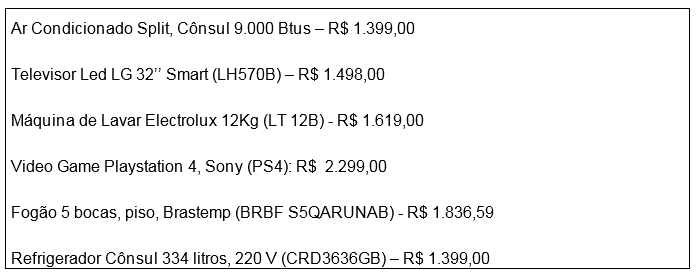 A lista com os valores de produtos mapeados em outubro pelo Procon pode ser acessada pelo site. Confira alguns valores, sem o desconto da Black Friday:
