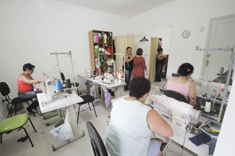 Há oito anos no número 1 da Rua Frei Francisco Sampaio, Samantha Franzo (de preto na foto) conta hoje com apoio de mais quatro mulheres para confecção e reforma de roupas em geral. A equipe aumentou por conta da alta demanda, mas engana-se quem acredita que o faturamento também melhorou. “Na verdade, nossa demanda hoje é diferente e mais complexa. Até uns meses atrás as pessoas vinham principalmente fazer pequenos ajustes nas roupas novas, como bainha. Hoje, elas aparecem para reformar o que estava há tempos guardado no armário. Isso gera um trabalho bem maior do que pequenos ajustes, gerando mais horas trabalhadas, mas não necessariamente mais dinheiro”, detalha Samantha.