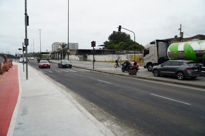 Agora, pedestres e ciclistas contam com um caminho mais seguro e confortável naquele trecho. Trabalhadores dos terminais da região e usuários das catraias que atravessam de Santos para Vicente de Carvalho (Guarujá), nos atracadouros que ficam na bacia do mercado e no cais, já podem usar a faixa de pedestres, com semáforo e radar para maior segurança. E os motoristas e motociclistas com duas faixas de rolamento, num trecho com velocidade máxima de 60 km/h.