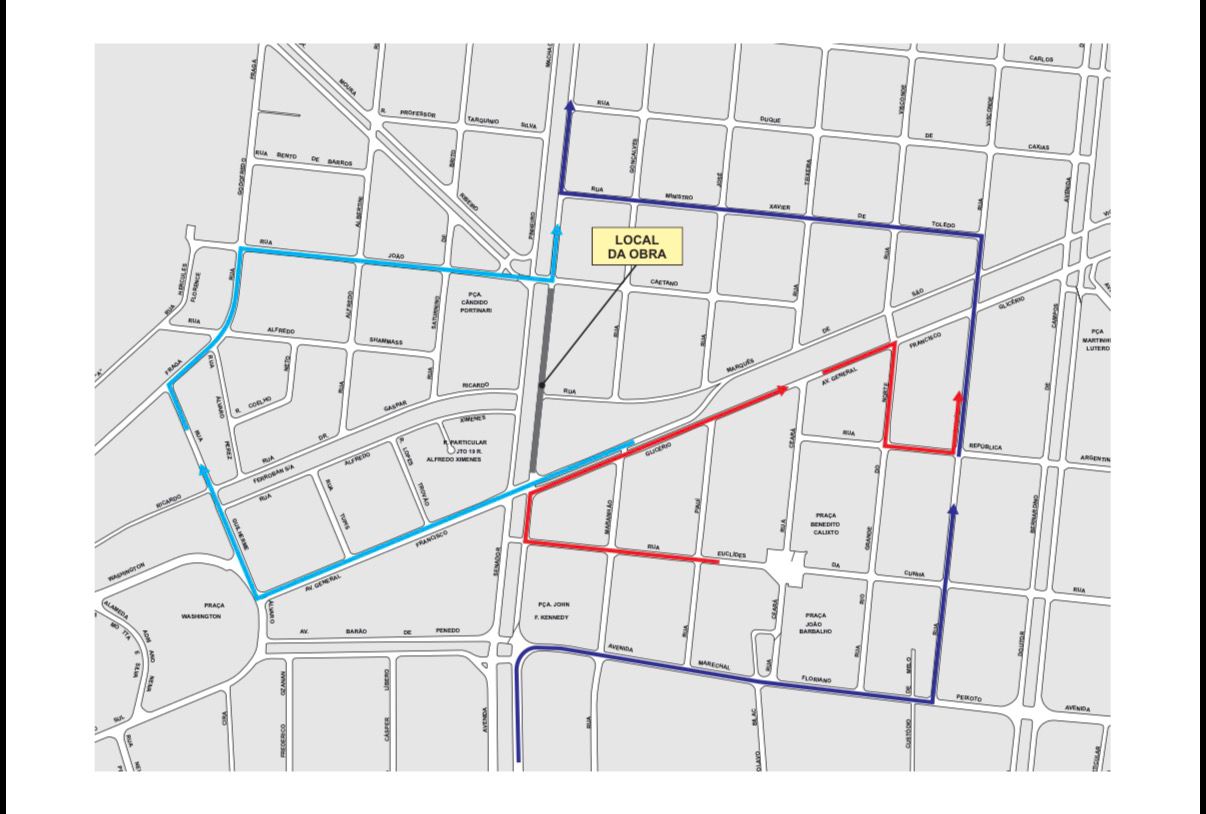 Afinal, há previsão de liberação apenas para o final do mês, os fluxos desviados se concentrarão na região da Rua Visconde de Cairu com a Rua Duque de Caxias.