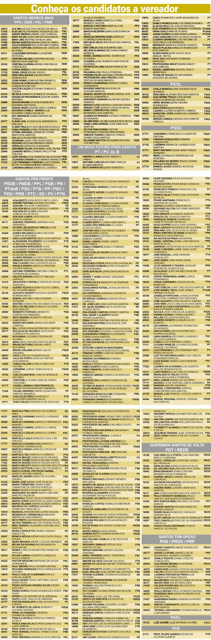 Veja a lista de todos os candidatos a vereador de Santos | Boqnews