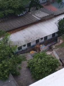 Árvore da escola Iveta Mesquita tombou para um imóvel vizinho. Ninguém se feriu. Foto: Divulgação