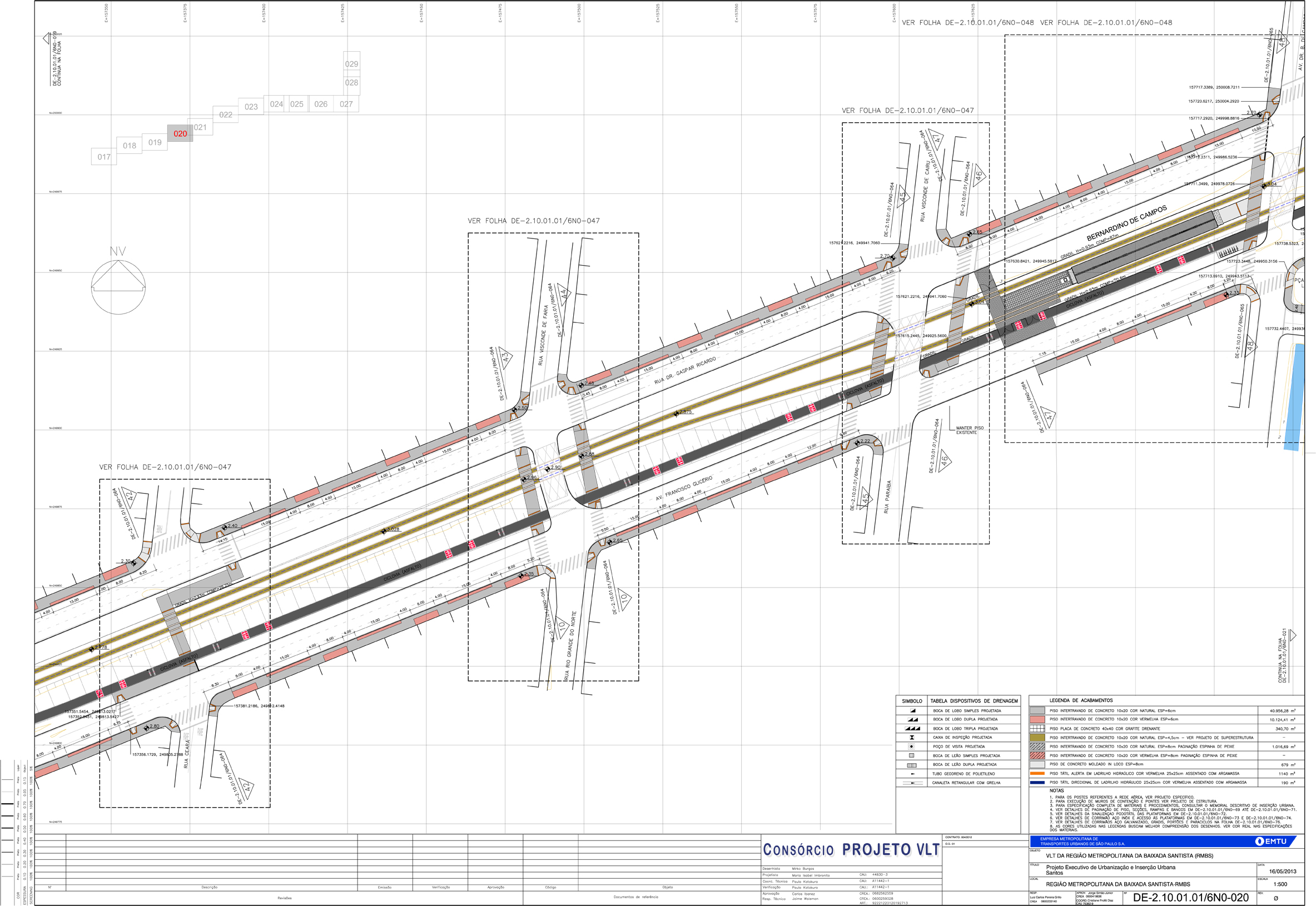 próximo à Estação da Cidadania, por pedido do Condephaat por conta do imóvel em questão ser tombado. De acordo com a EMTU, o traçado do VLT, após o restaurante Sideral, continuará pela faixa da antiga linha férrrea até as proximidades da Avenida Bernardino de Campos (canal 2) e o atual canteiro central da Avenida Francisco Glicério deixará de existir. Já a ciclovia passará a ser próxima ao traçado do VLT, invadindo a atual via sentido Ponta da Praia – Marapé. O VLT, junto com espaço para pedestres e a ciclovia, formarão o futuro canteiro central da avenida. Somente após a Estação de Passageiros próxima ao canal 2 (em frente à Rua Visconde de Cairu), o VLT e toda a estrutura invadirá um pouco mais a faixa sentido Ponta da Praia – Marapé, mas ainda utilizará cerca de um metro da antiga linha férrea. Neste ponto, está sendo aberta uma via de 9 metros. Até a Av. Ana Costa, ela seguirá nesta linha. Bem próximo à Av Ana Costa será construída outra estação. O trecho deve entrar em obras assim que a pavimentação do canal 3 estiver mais avançada e a atual Rua Marquês de São Vicente estiver pronta, de acordo com o presidente da CET, Antonio Carlos Gonçalves, em entrevista ao Jornal Enfoque, da Santa Cecília TV. Isso porque a Av. Francisco Glicério ficará interditada neste trecho. A assessoria da EMTU informou ainda que todo este trecho deve ser entregue até o final de dezembro.