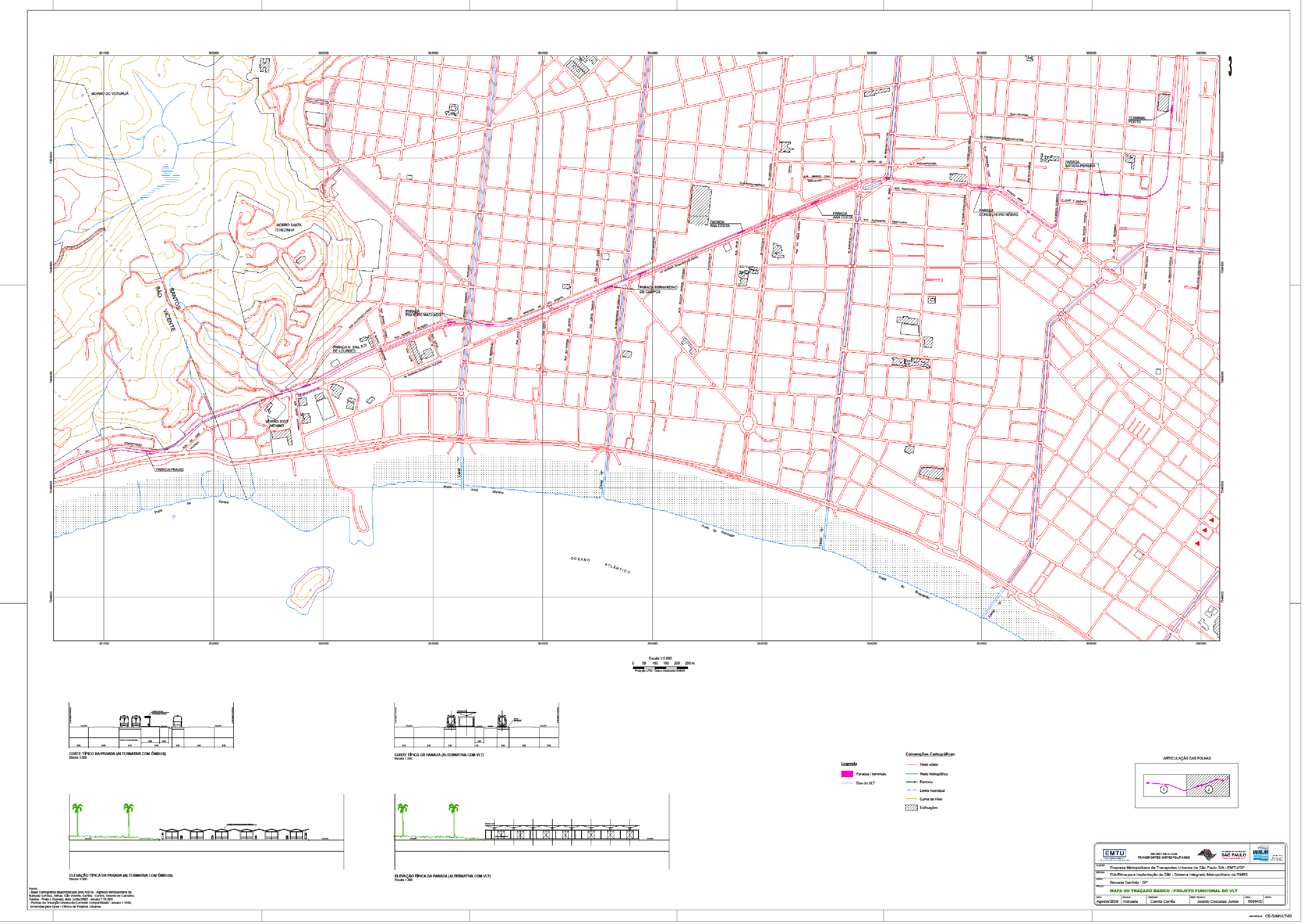 A EMTU, por outro lado, defende que o traçado não foi alterado e que segue da maneira que fora proposta. “Se fizermos um cálculo hoje, do Barreiros até o Estuário, de 90 a 95% continua na linha férrea”, ressalta Romão. Algumas mudanças foram realizadas, mas que – de acordo com o engenheiro – não podem ser consideradas mudanças de traçado.