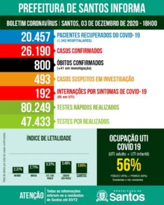 Na quinta (3), Santos atingiu a triste marca de 800 santistas vítimas da Covid-19, registro ocorrido em apenas oito meses e por uma única doença.