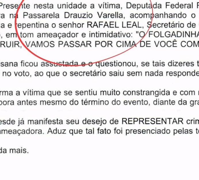 Aliás, uma curiosidade no boletim de ocorrência feito pela deputada Rosana Valle na delegacia.