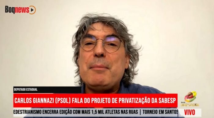 Deputado Carlos Giannazi participou do Jornal Enfoque e falou sobre a privatização da Sabesp, entre outros temas. Reprodução/Jornal Enfoque