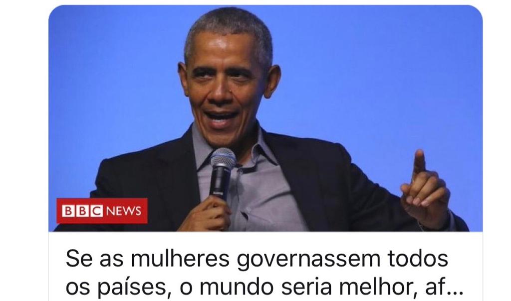 O ex-presidente dos Estados Unidos, Barack Obama (2009 a 2017), sempre lúcido e brilhante, proferiu essa frase em relação às mulheres, onde continua dizendo que haveria uma melhora geral no padrão de vida e nos resultados. Segundo Obama, as mulheres não são perfeitas, mas “são indiscutivelmente melhores que nós (homens)”. Desde que deixou a Casa Branca, ele e sua mulher Michelle Obama estão à frente da Fundação Obama, criada para ajudar na formação de lideranças jovens em todo o mundo. Que falta ele faz no quadro político mundial!