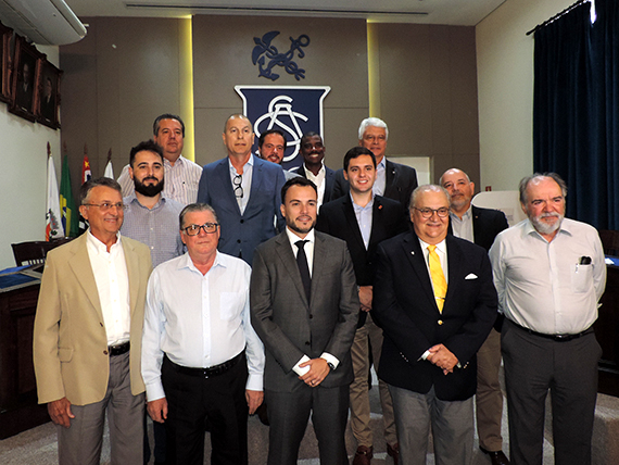 leito por aclamação em Assembléia Geral Ordinária realizada na última terça-feira (10), Mauro Sammarco (ao centro, à frente) irá comandar a Associação Comercial de Santos (ACS) nos próximos três anos. Além dos eventos já agendados para este ano (Semana do Jovem Empreendedor, o Seminário Universidade-Empresa na Baixada Santista e o Seminário Internacional do Café), ele pretende dará atenção especial às comemorações, em dezembro, dos 150 anos da entidade, quando será realizado lançamento de livro e jantar comemorativo.