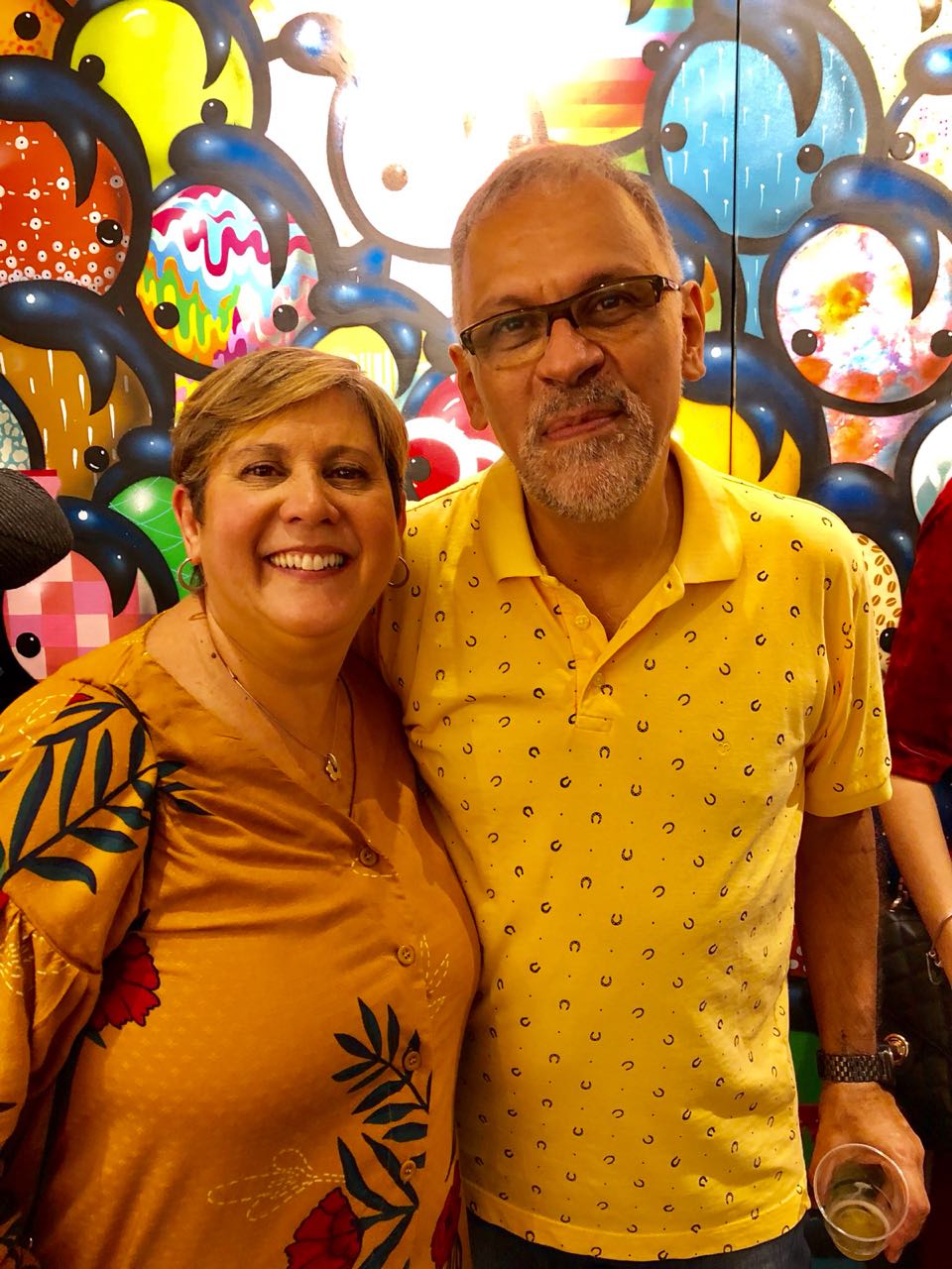 Cacá Mendes, arquiteto, no seu espaço Galeria de Arte, na inauguração da Santos Arquidecor, na segunda (11), com sua esposa, a publicitária Cris Nogueira!