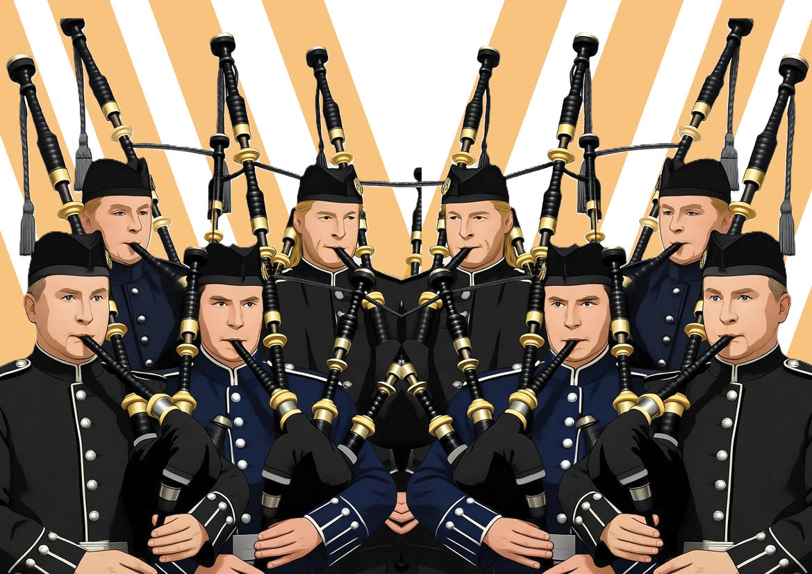 Consta que a atual “great highland bagpipe” ou pìob-mhòr, no idioma gaélico, surgiu no século 17, já associada à identidade nacional e militar da Escócia, tão tradicional quanto o “kilt”.