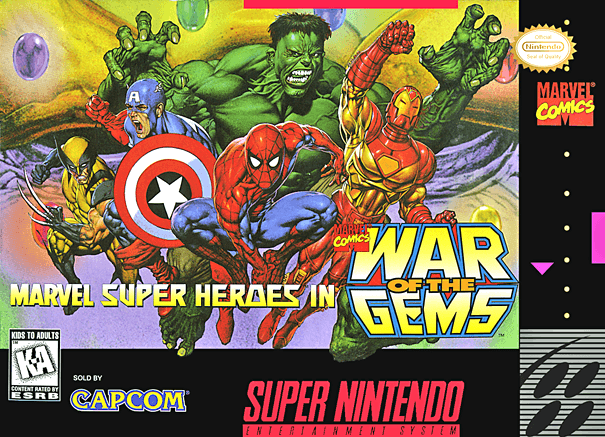 Marvel Super Heroes: War of the Gems foi lançado para o SNES em 1995 pelas mãos da Capcom)