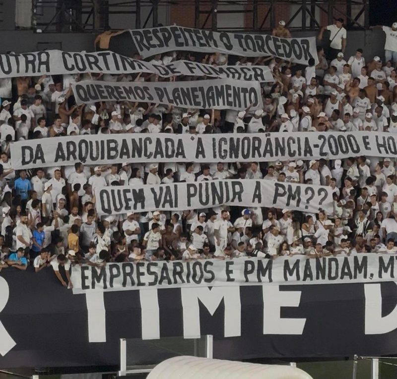 A organizada também questionou o modelo administrativo do Santos e cobrou mudanças no futebol. Os protestos continuaram após o apito final do empate por 1 a 1, quando parte da torcida voltou a se manifestar nas arquibancadas.