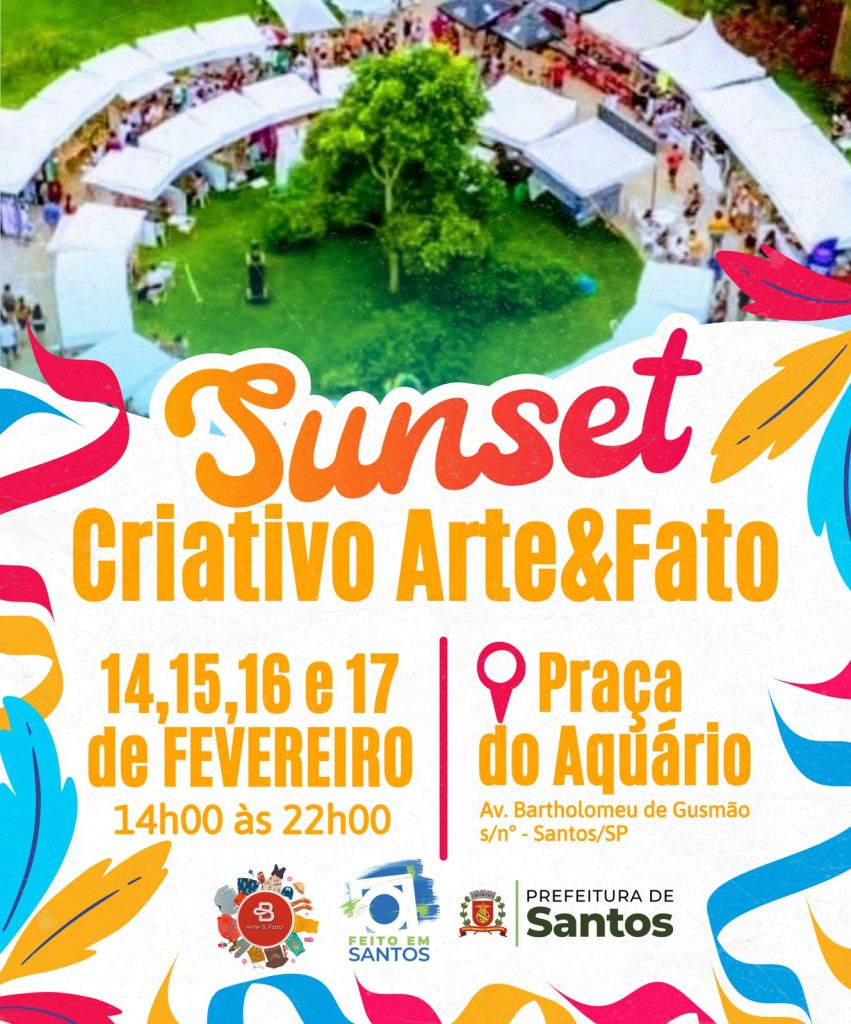 No domingo, 15 de fevereiro de 2026, acontece a 4ª edição oficial do SANTOS SUNSET. O evento é gratuito e será realizado das 15h às 20h, com programação musical à beira-mar.