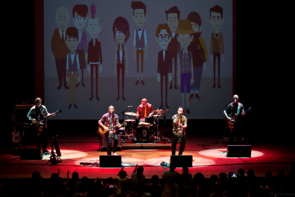 O show abre com a projeção de uma animação do jogo de videogame RockBand e a banda convida as crianças para subirem ao palco e tocar Blackbirdcom os mais de 70 instrumentos musicais e objetos sonoros que estão em cena. Duas músicas depois, com a plateia já incendiada de energia e animação, é a vez dos pais e adultos formarem um grande coral no palco cantando Twist and Shout.