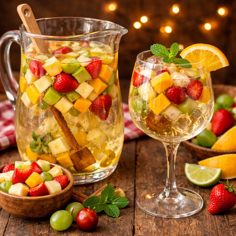 Com frutas variadas e servido bem gelado, o clericot é uma opção leve que agrada diferentes públicos e valoriza a mesa das celebrações de verão