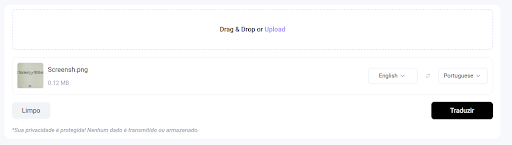 Tudo o que você precisa fazer é enviar uma imagem, selecionar os idiomas de entrada e saída, clicar no botão e pronto.
