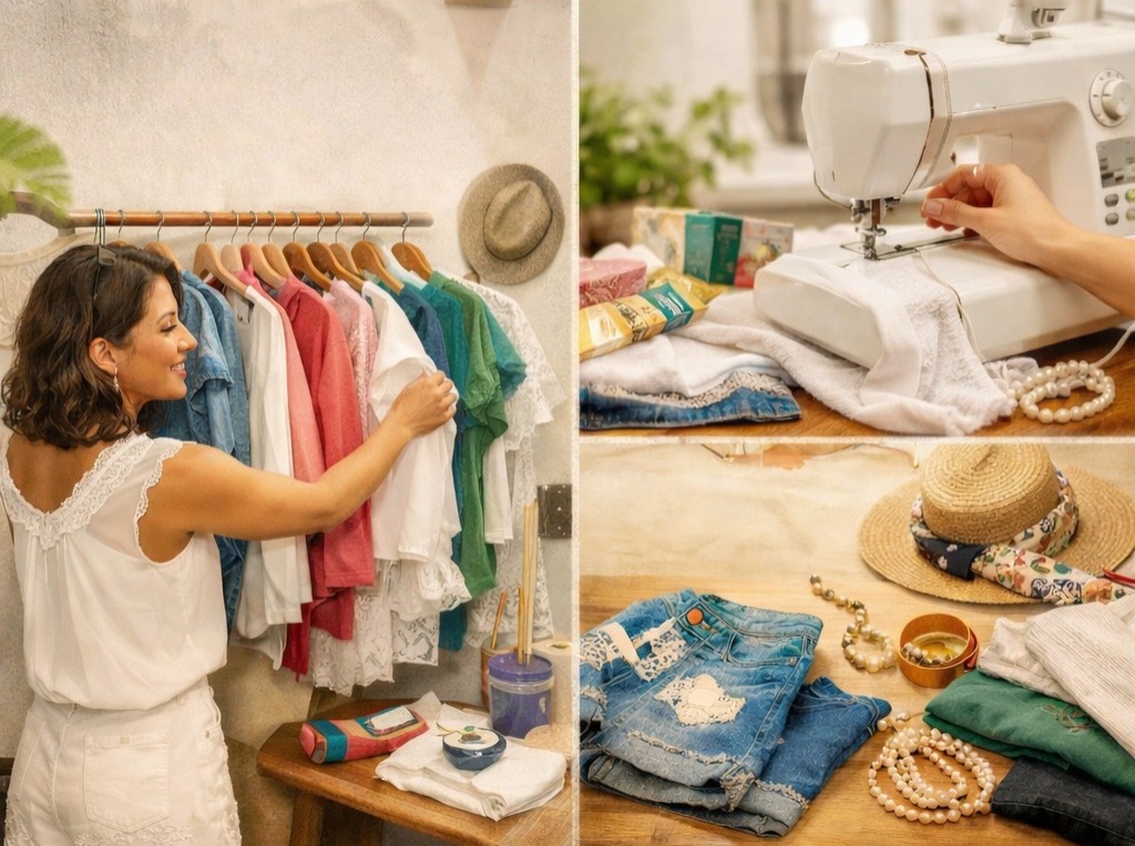 A customização também surge como alternativa criativa e econômica. Aplicações de renda, pinturas com estêncil, desenhos abstratos ou pequenos ajustes em golas e mangas ajudam a transformar roupas antigas em peças atualizadas. Portanto, para a especialista, o mais importante é que o processo seja leve, intuitivo e respeite o estilo e o momento de cada pessoa.