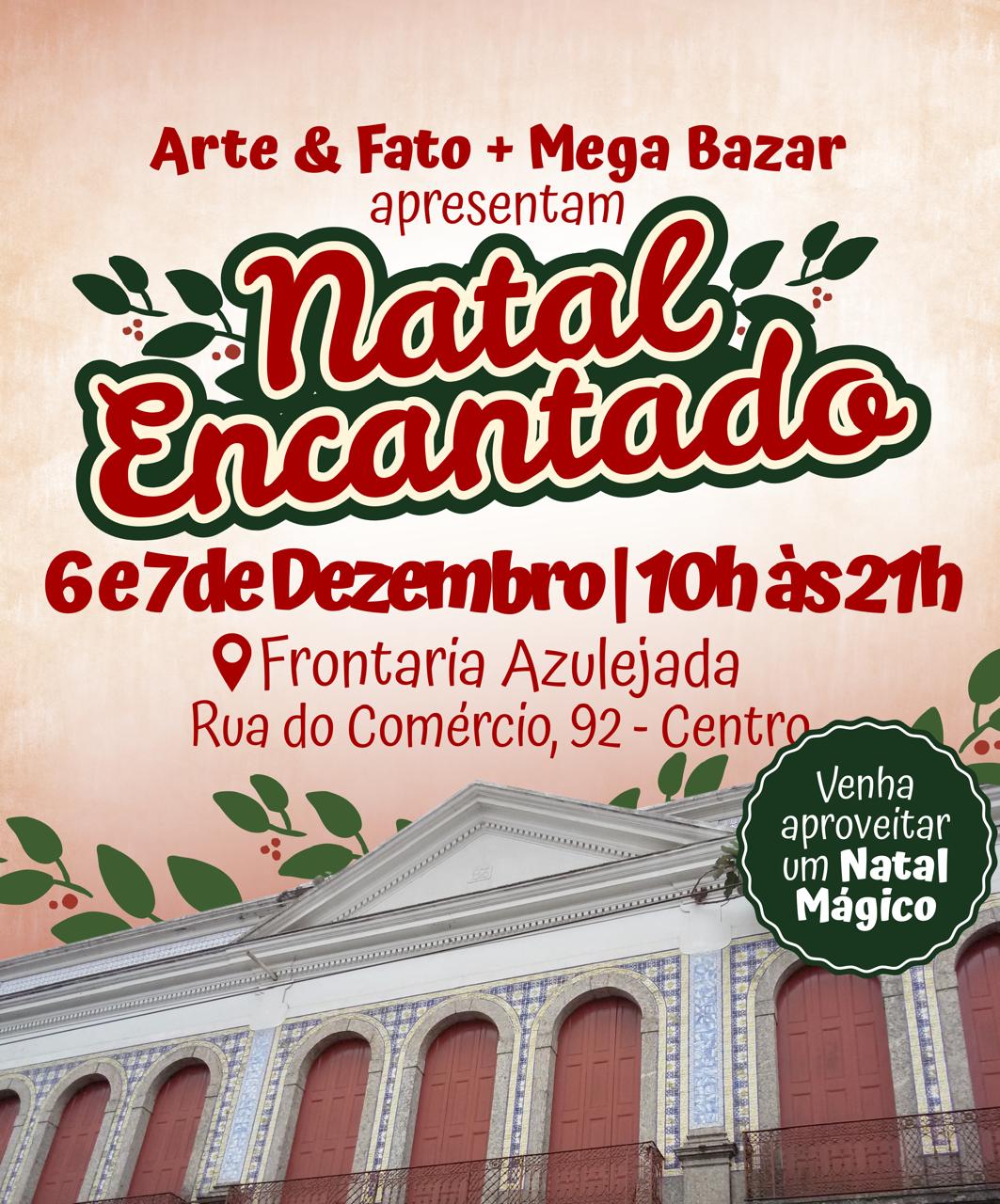 Nos dias 6 e 7 de dezembro, a charmosa Frontaria Azulejada, um dos principais cartões-postais da cidade, recebe o Natal Encantado, evento realizado pelos bazares Arte & Fato e Mega Bazar. A programação reúne atrações culturais, gastronomia, atividades infantis e expositores locais. O evento acontece das 10h às 21h, na Rua do Comércio, 92 – Centro.