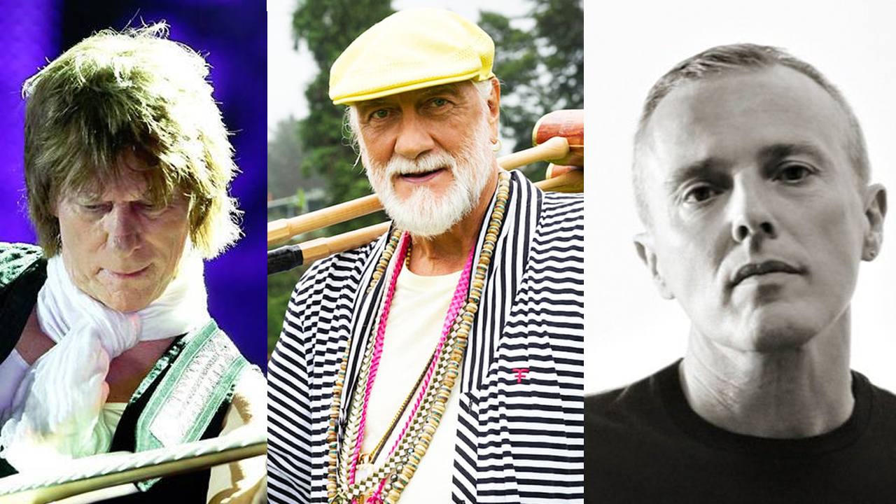 O guitarrista Jeff Beck, o baterista do Fleetwood Mac, Mick Fleetwood, e Curt Smith, vocalista da banda Tears for Fears, que virá ao Brasil no Rock in Rio, em setembro
