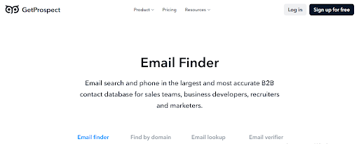 Seu principal recurso é o Domain Search, que permite encontrar todos os contatos associados a um domínio específico.