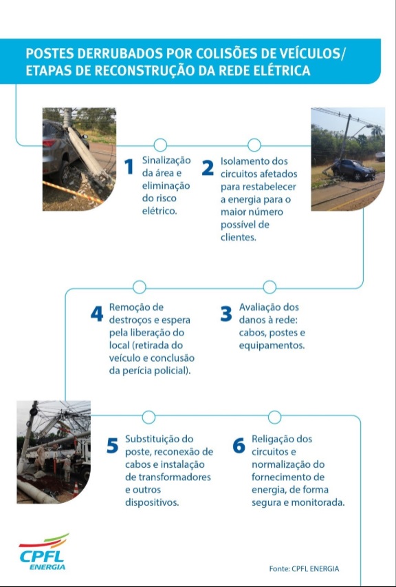 Importante dizer que os condutores dos veículos identificados como responsáveis legais pelos acidentes podem ter que arcar com os custos dos reparos na rede elétrica, cobrados pela concessionária nesses casos. Um poste tem valor entre R$ 3 mil a R$ 14 mil, conforme os equipamentos que sustenta.
