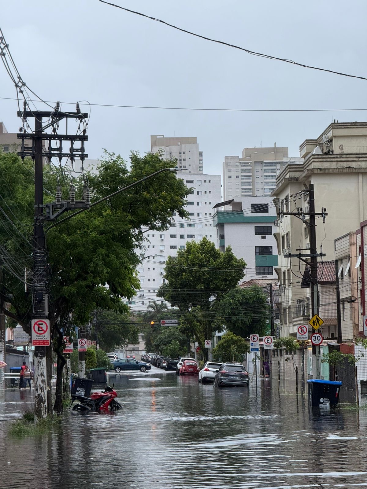 Nesta segunda-feira (19), as fortes chuvas causaram alagamentos e transtornos em alguns pontos das cidades da Baixada Santista.